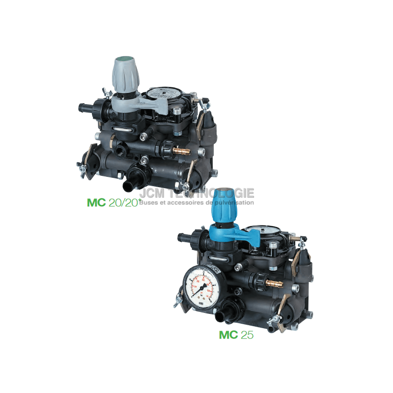 Les pompes à membrane à basse pression MC 20 - MC 25 et leurs pression maximale de 25 bars pour 650 RPMs, proposent une pulvérisation optimale jusqu'à 23L/min.