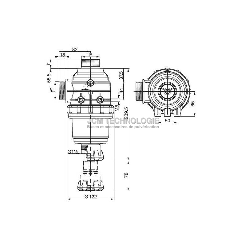 Filtre aspiration Arag 314 avec vanne - 1"1/2 M - 32 mesh rouge