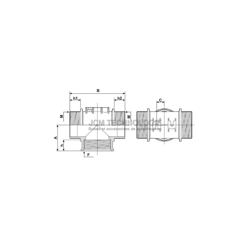 Té mâle / femelle / mâle 3" Arag avec orifices de fixation du raccord
