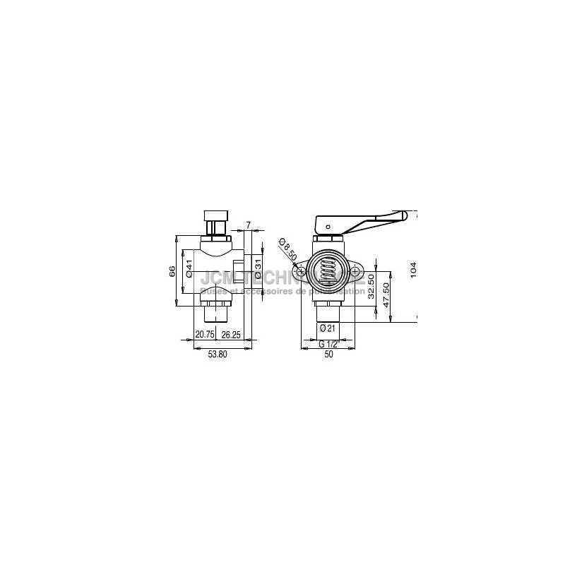 Vanne manuelle en T Polmac - sortie 1/2" court