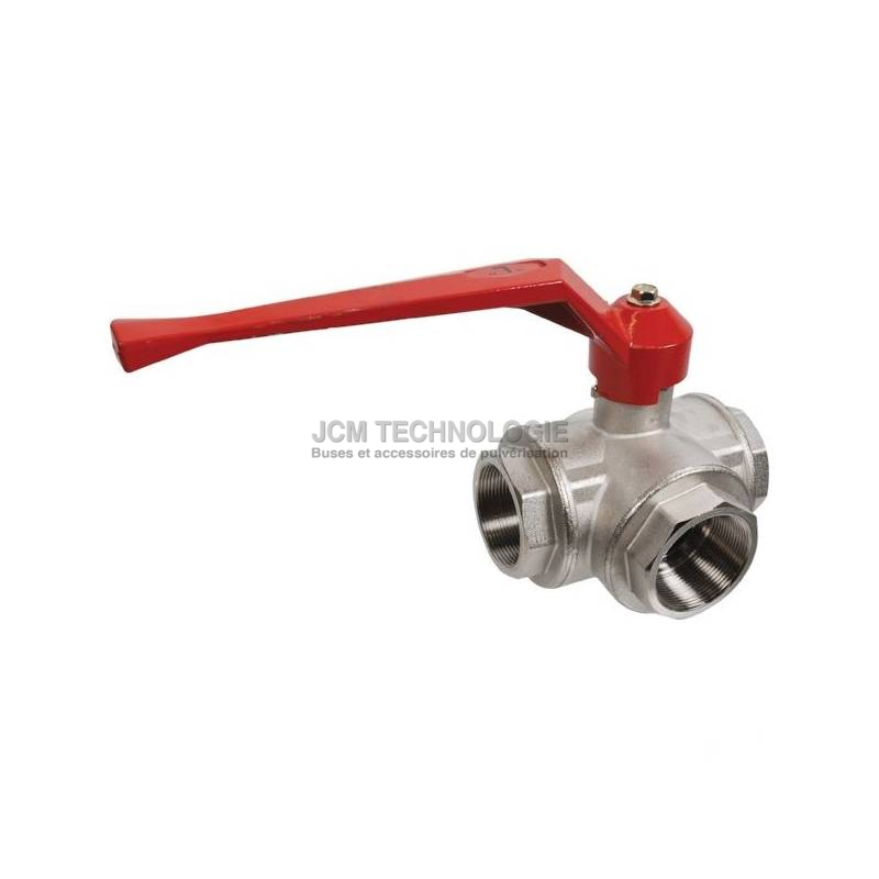 Vanne manuelle 3 voies en l - 2" femelle - laiton nickelé